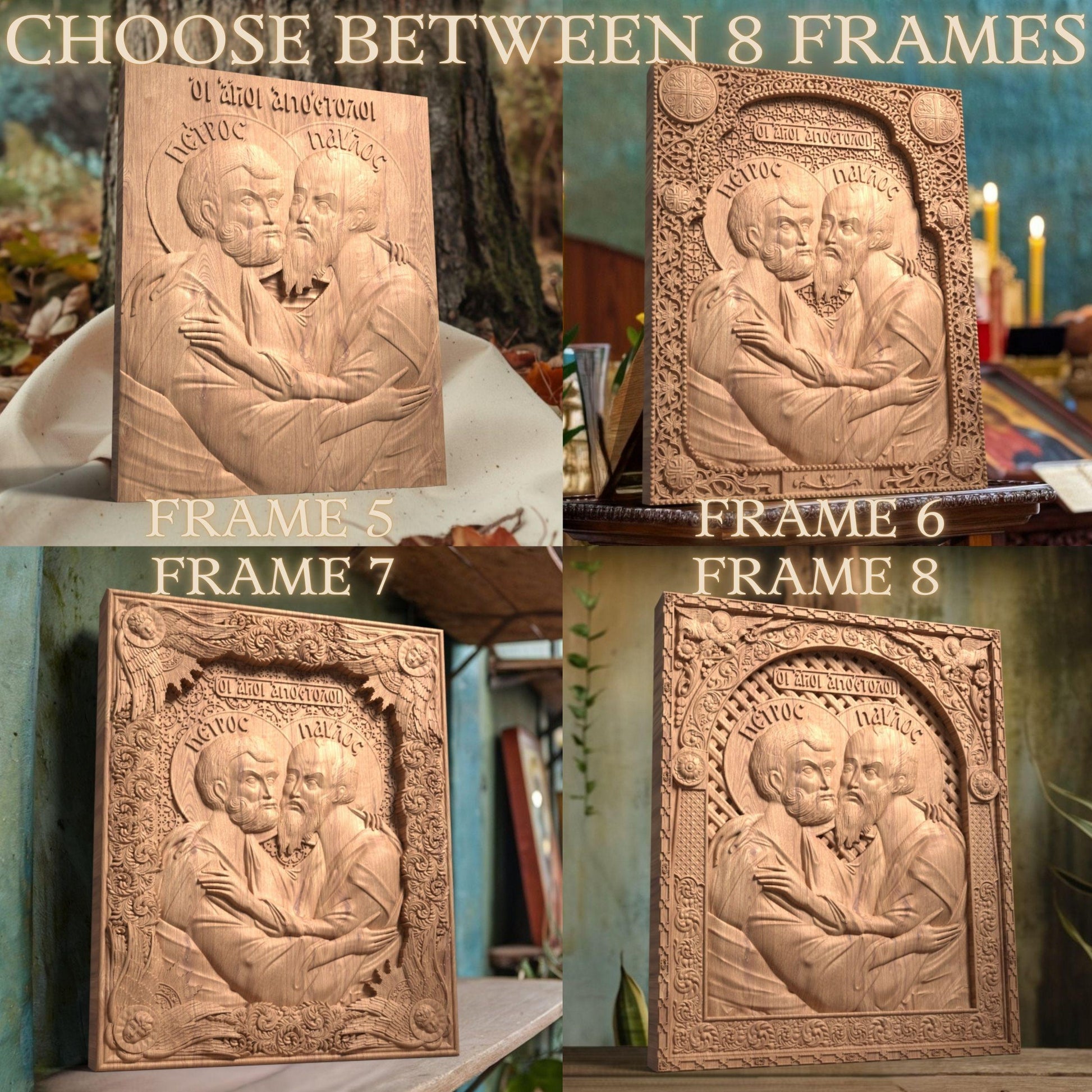 Αpostles Peter and Paul Wooden Carved Handcrafted Christian Religious Icon. Byzantine Home Wall Art Decor Gift. Orthodox Greek Woodcarving Sculpture.