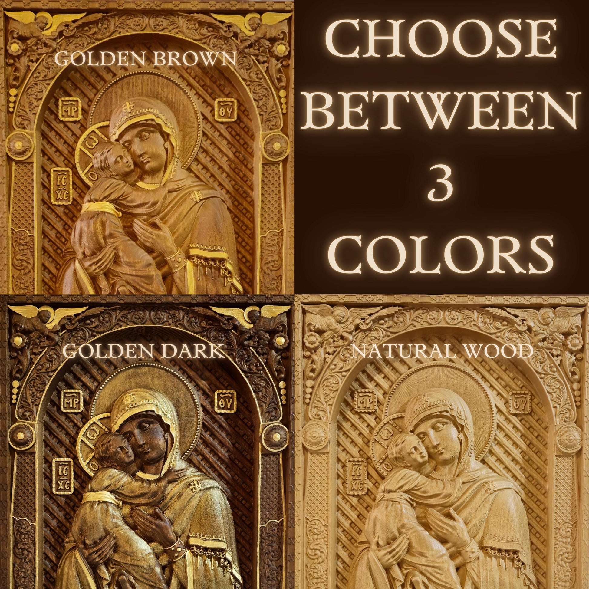 MANUFACTURING PROCESS This Icon is made from high quality natural solid Linden wood. The Icon’s manufacturing involve computer processing technology with manual tuning and is finished by hand with environmentally friendly water-based paints and beeswax. Golden highlights are painted by hand, if chosen.