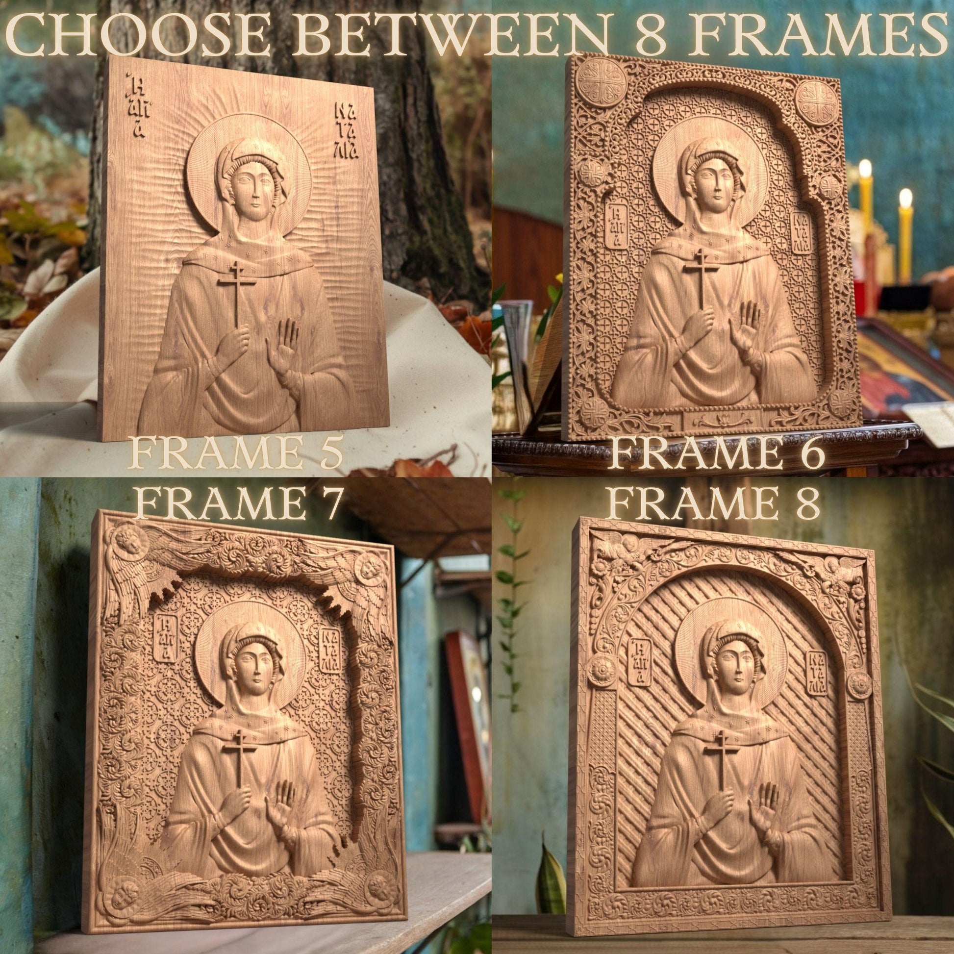 Saint Natalia of Moscow Wooden Carved Handcrafted Christian Religious Icon. Byzantine Home Wall Art Decor Gift. Orthodox Greek Woodcarving Sculpture.