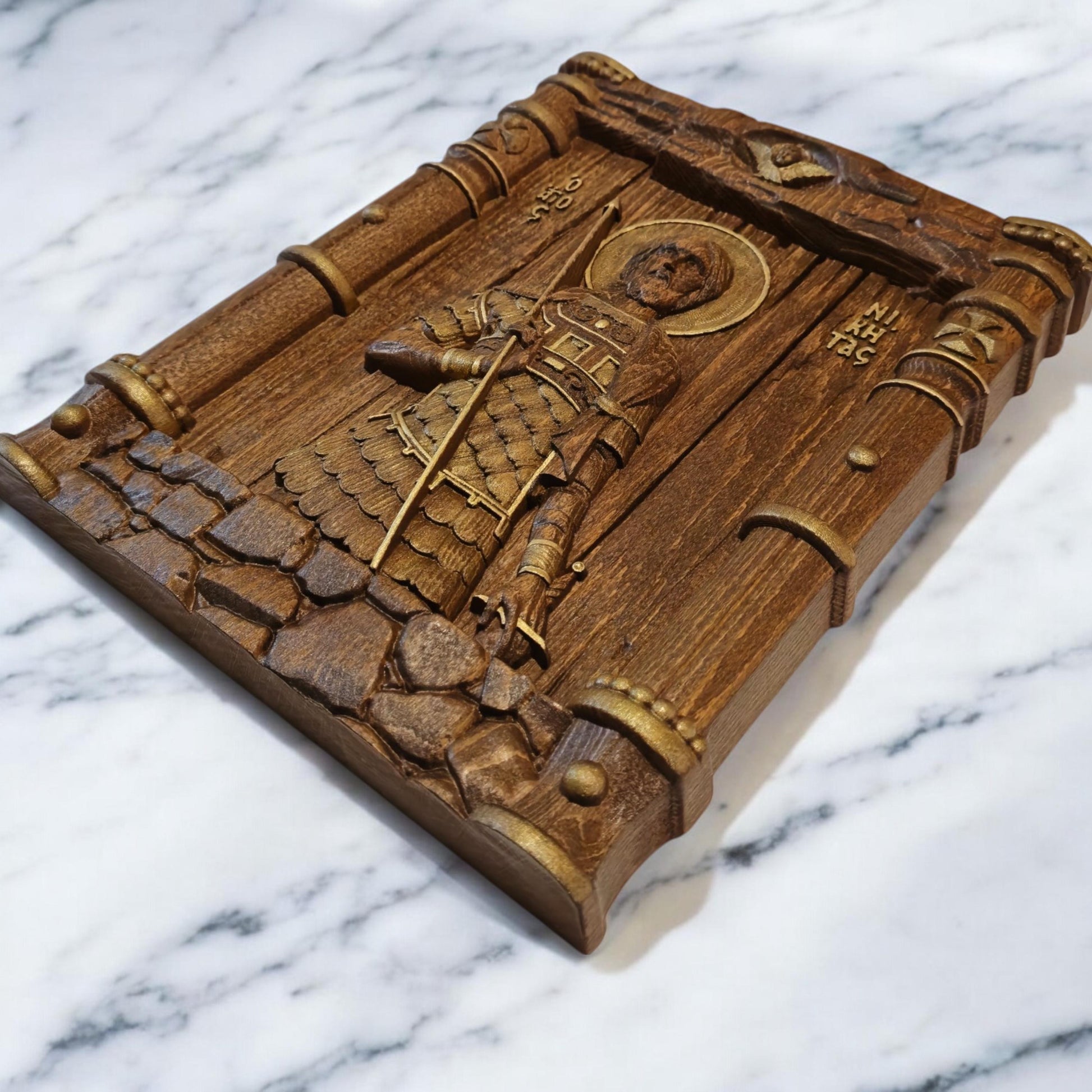 Saint Nikitas Wooden Carved Handcrafted Christian Religious Icon. Byzantine Home Wall Art Decor Gift. Orthodox Greek Woodcarving Sculpture.